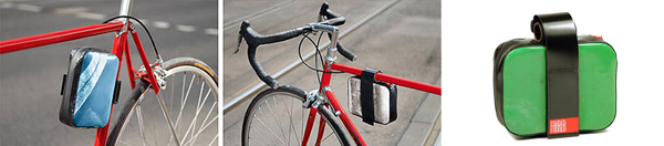 Però bé, Fahrer ofereix moltes més possibilitats per al món dels ciclistes, sobretot els urbans. Bosses de mà, bosses per a portàtils, clauers, fundes de mòbil, cintes per enganxar els baixos dels pantalons...tot amb un estil molt urbanita. Les bosses també es poden enganxar a la bici d’una forma segura i ferma. Us deixo més fotos.